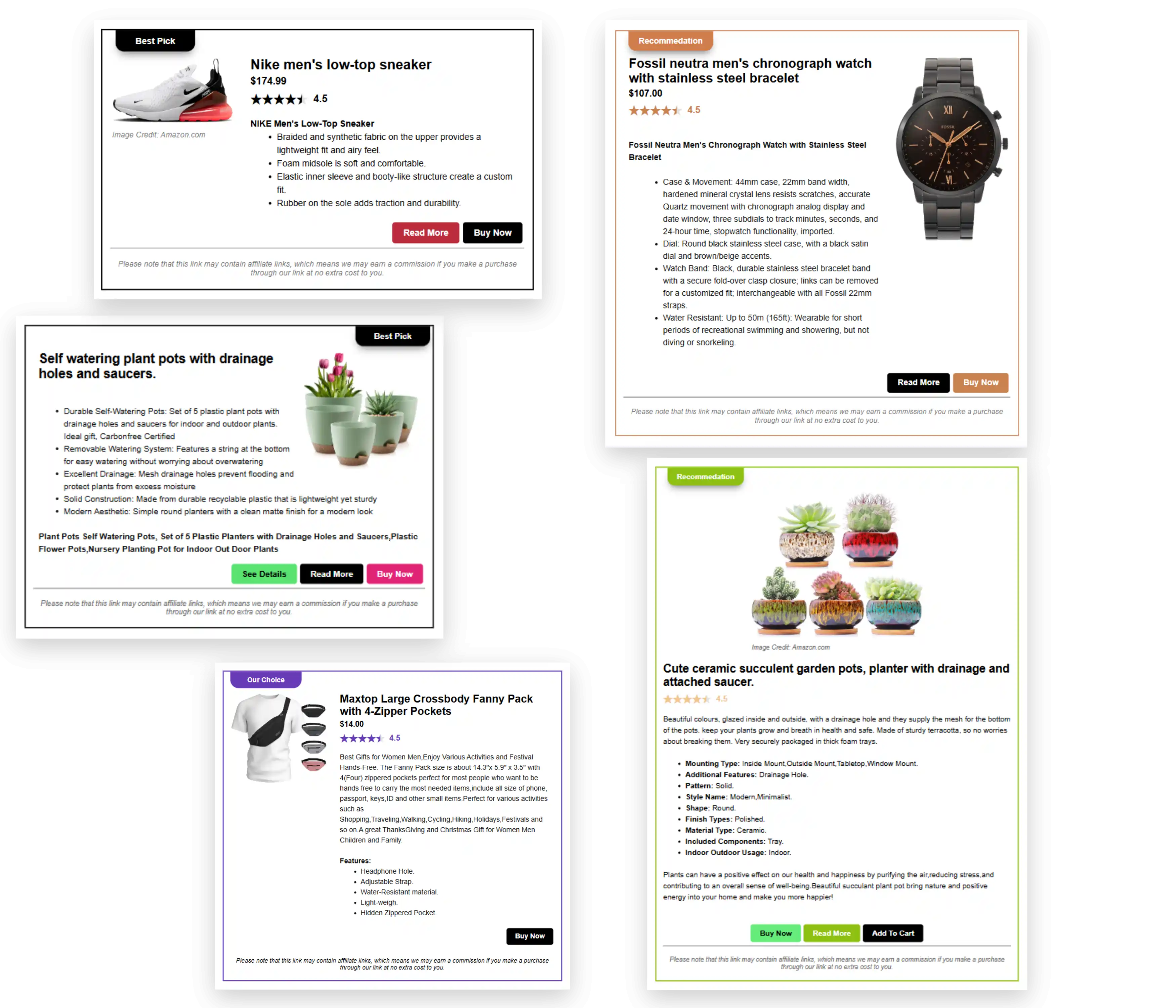 Creating a product box is simple. Just fill out a form with your product details, such as the title, description, price, image, and any tags (e.g., 'Best Choice'), and save it. Flauntopia will then generate a small piece of code for you to embed on your site. Once you embed the code, the product box will appear with the default design. You can update or customize the design at any time to change the look and feel of the product box.